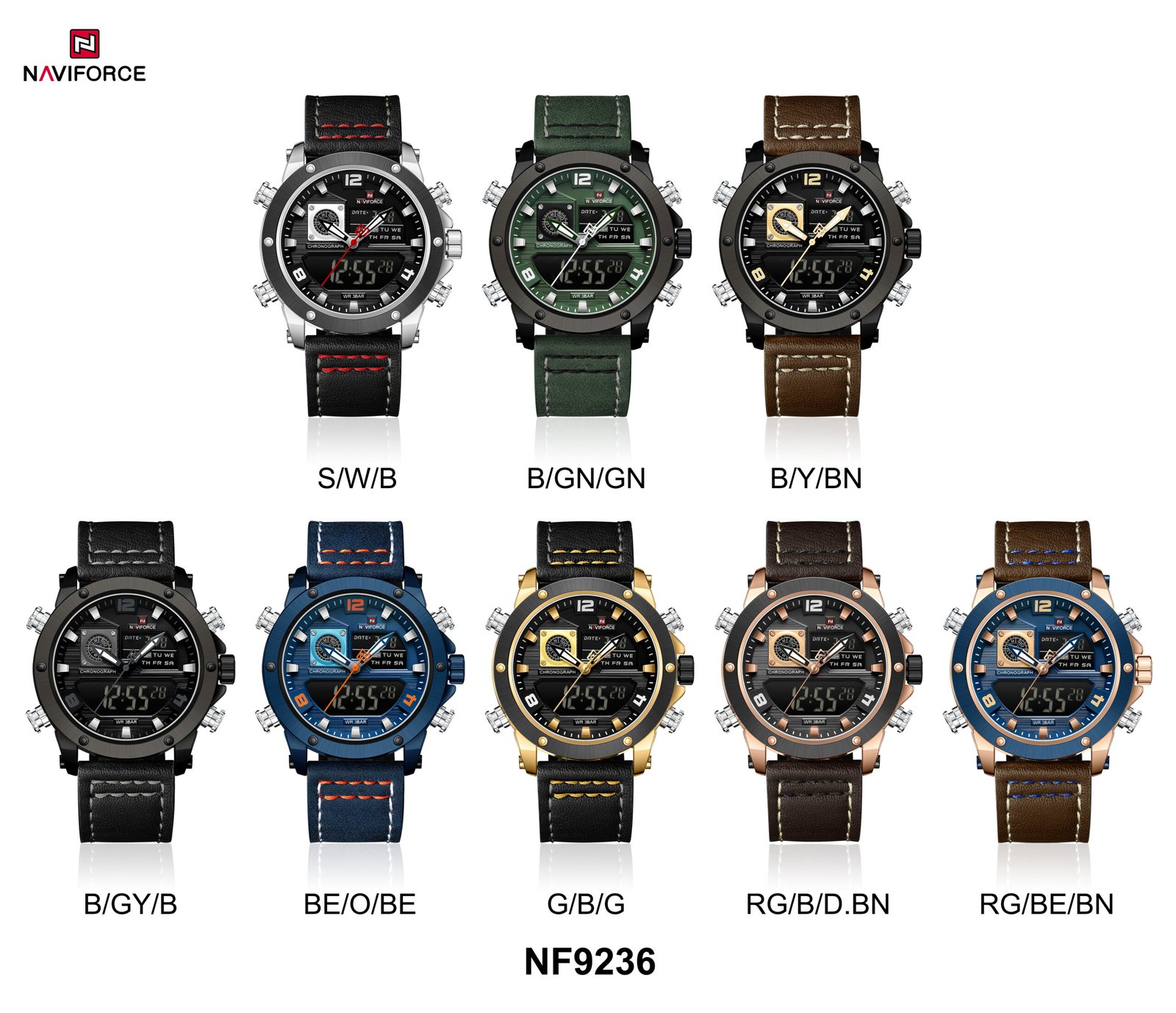 With 30-meter water resistance, a comfortable leather strap, and a scratch-resistant crystal, the NF9236 is built to last through all your adventures! 🌍💪
