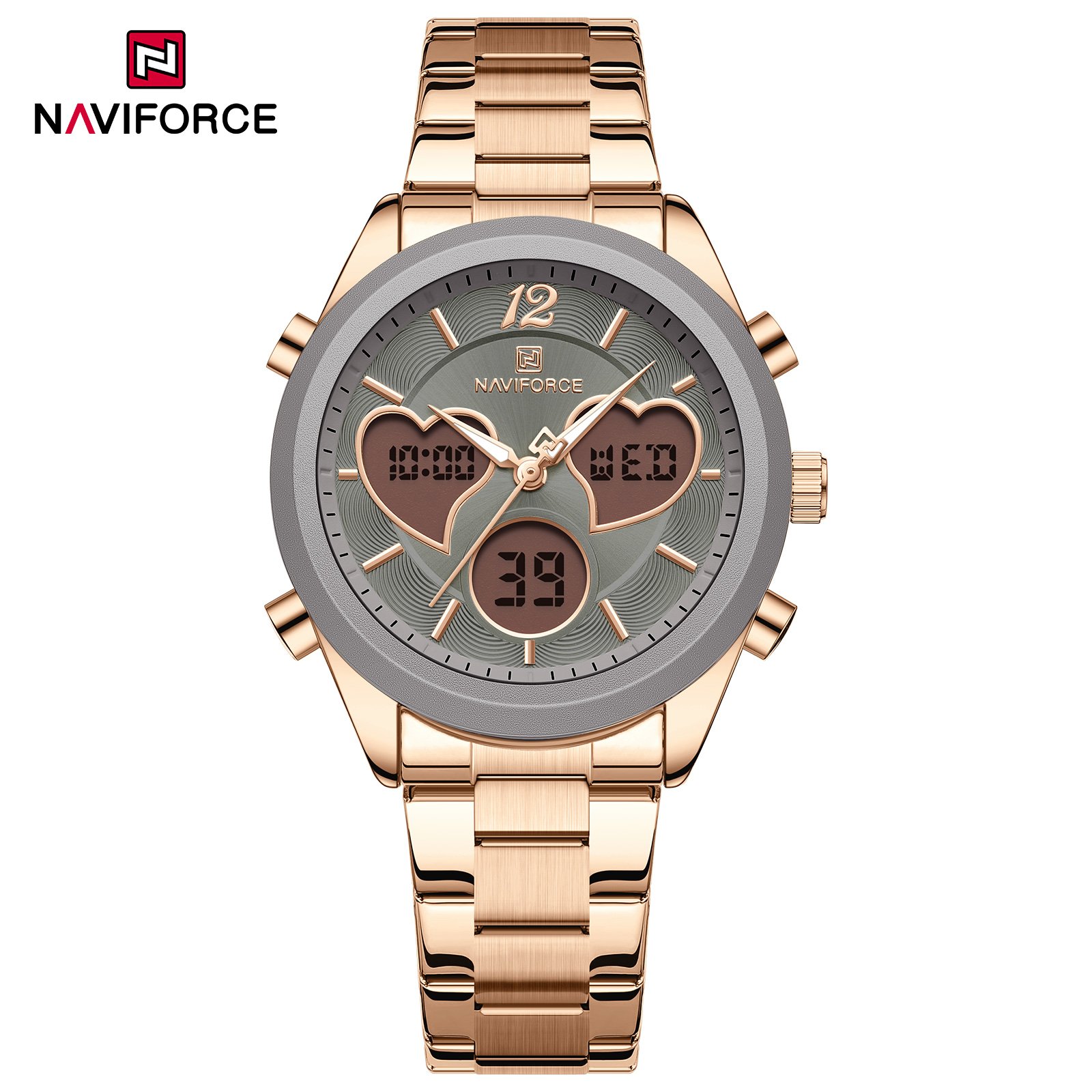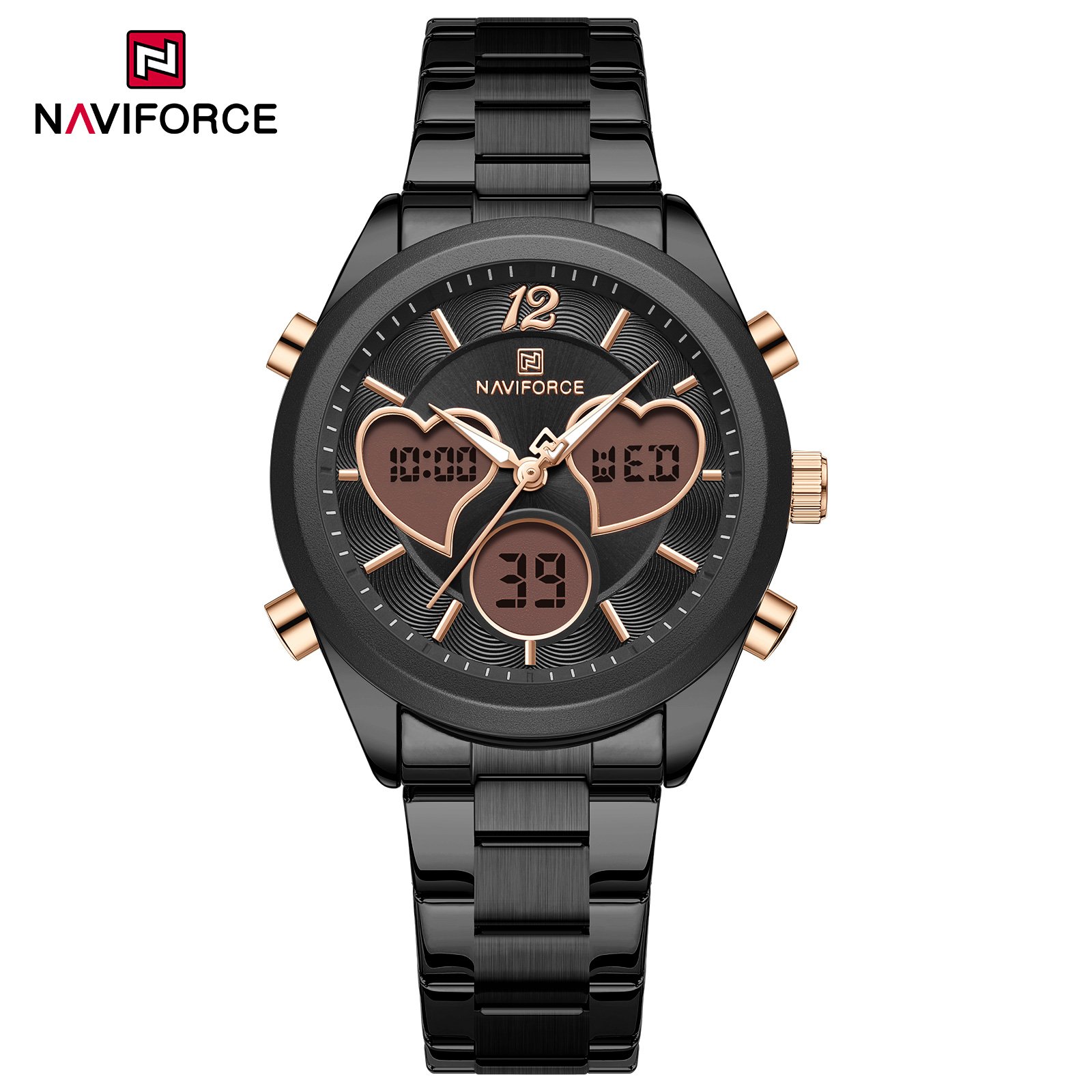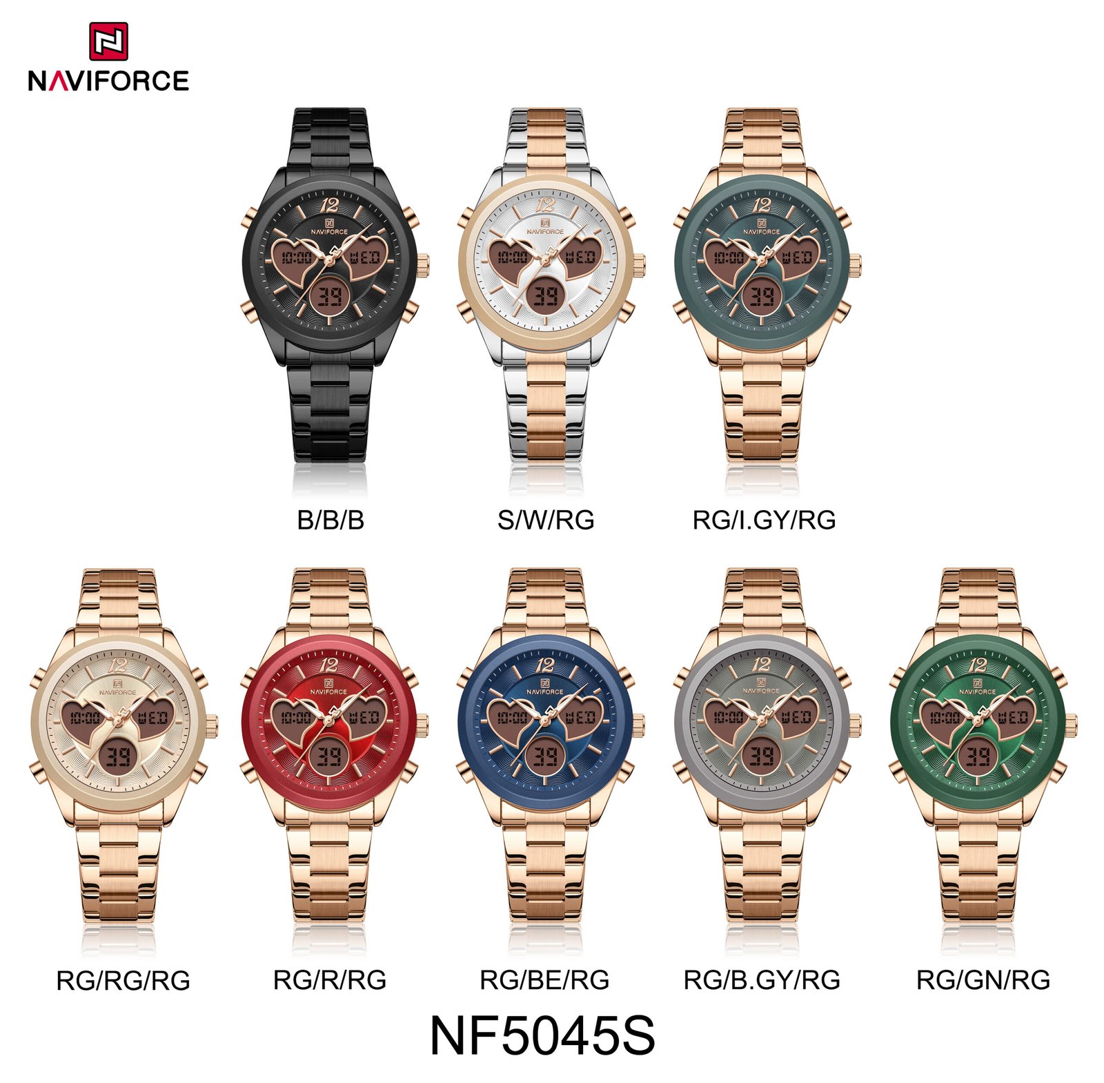| Description: | The Naviforce NF5045S, where the ‘S’ specifically denotes the Stainless Steel Strap version, is a fashionable and highly functional women’s watch that combines classic analog timekeeping with a modern digital display. |