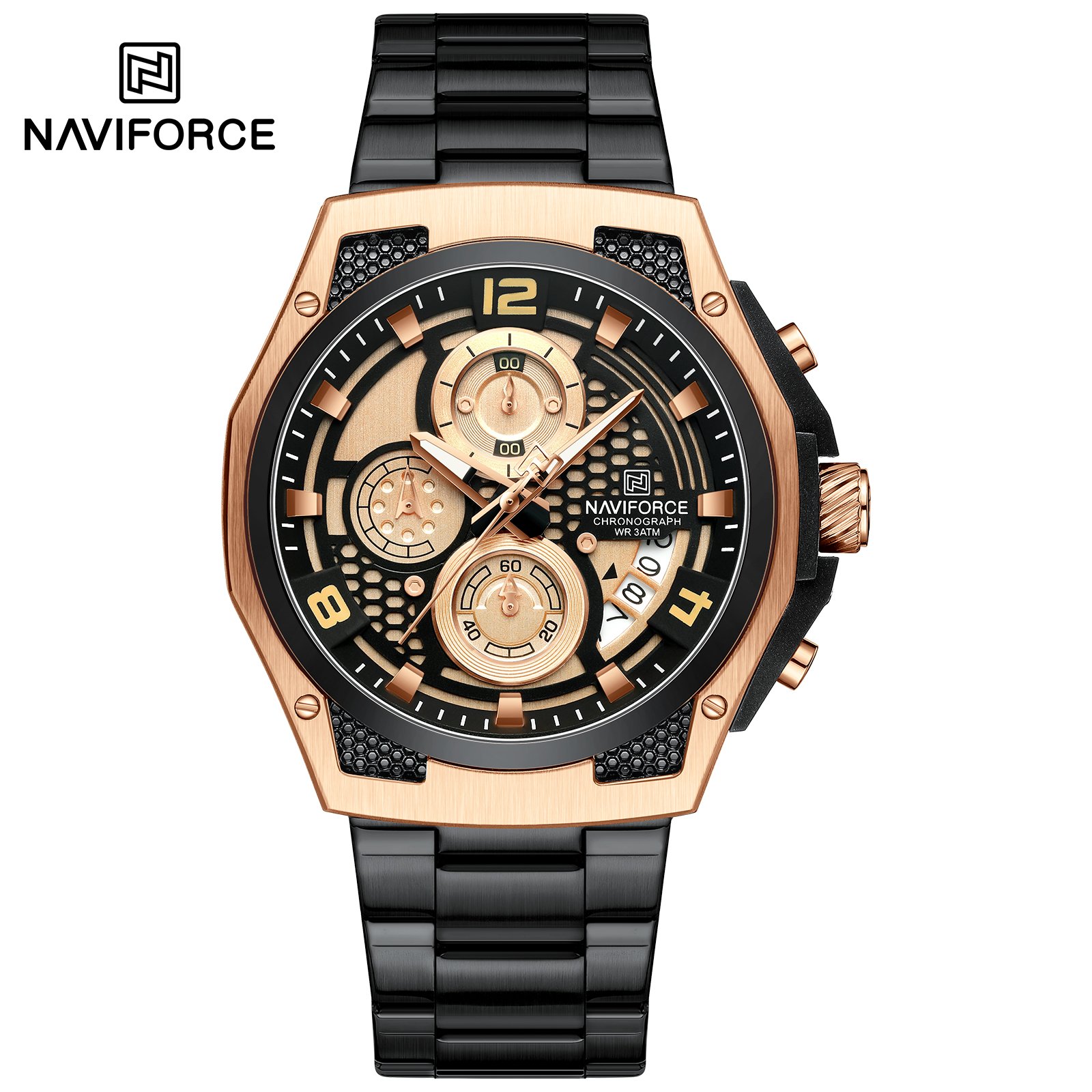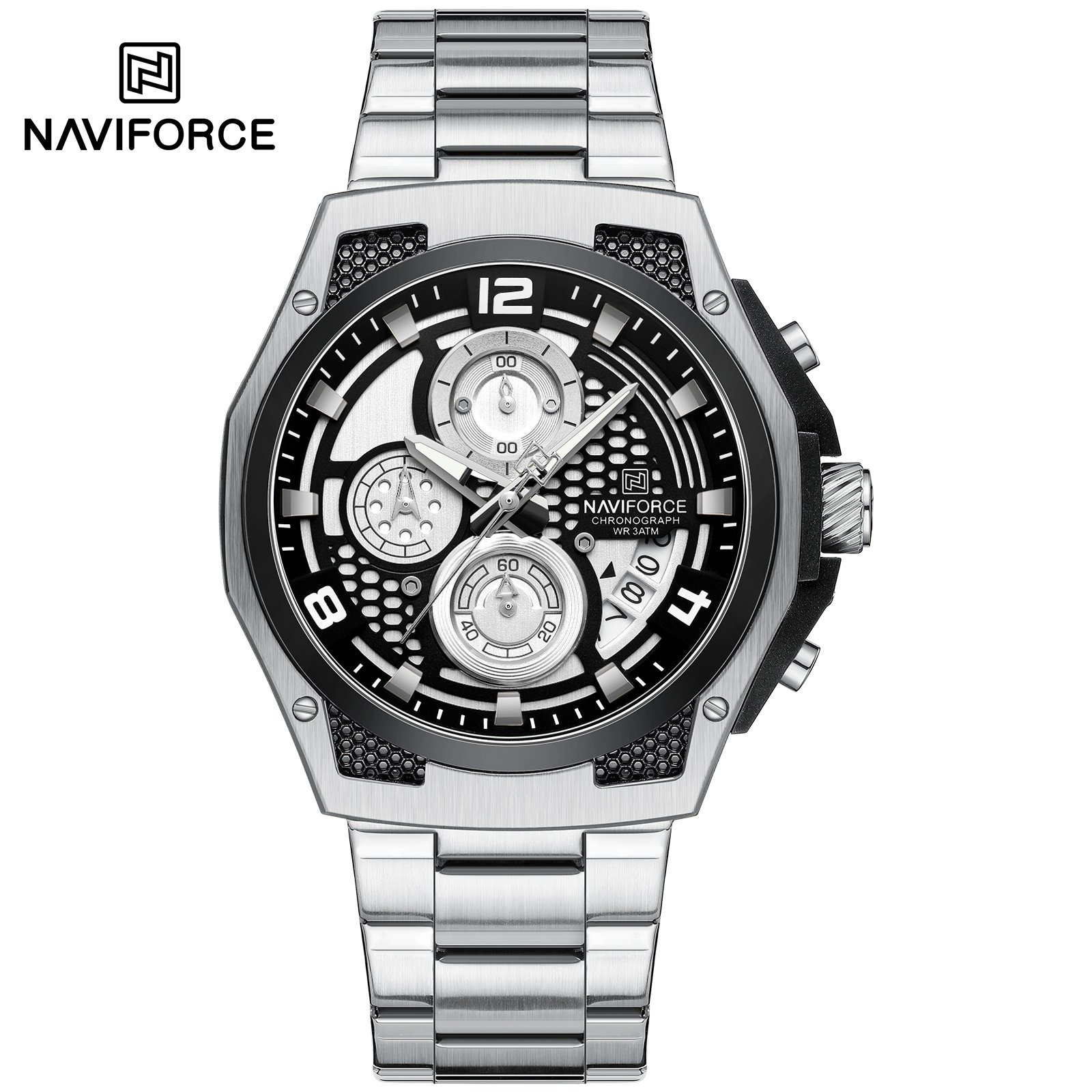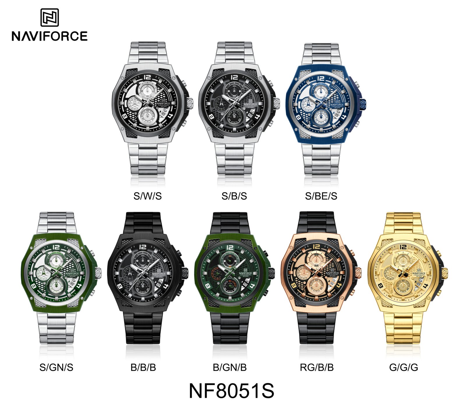 | Description: | The Naviforce NF8051S is a stylish and durable men’s quartz chronograph watch designed to be an eye-catching fashion accessory. It combines a bold metal silhouette with a distinctive dial texture and a full stainless steel bracelet |