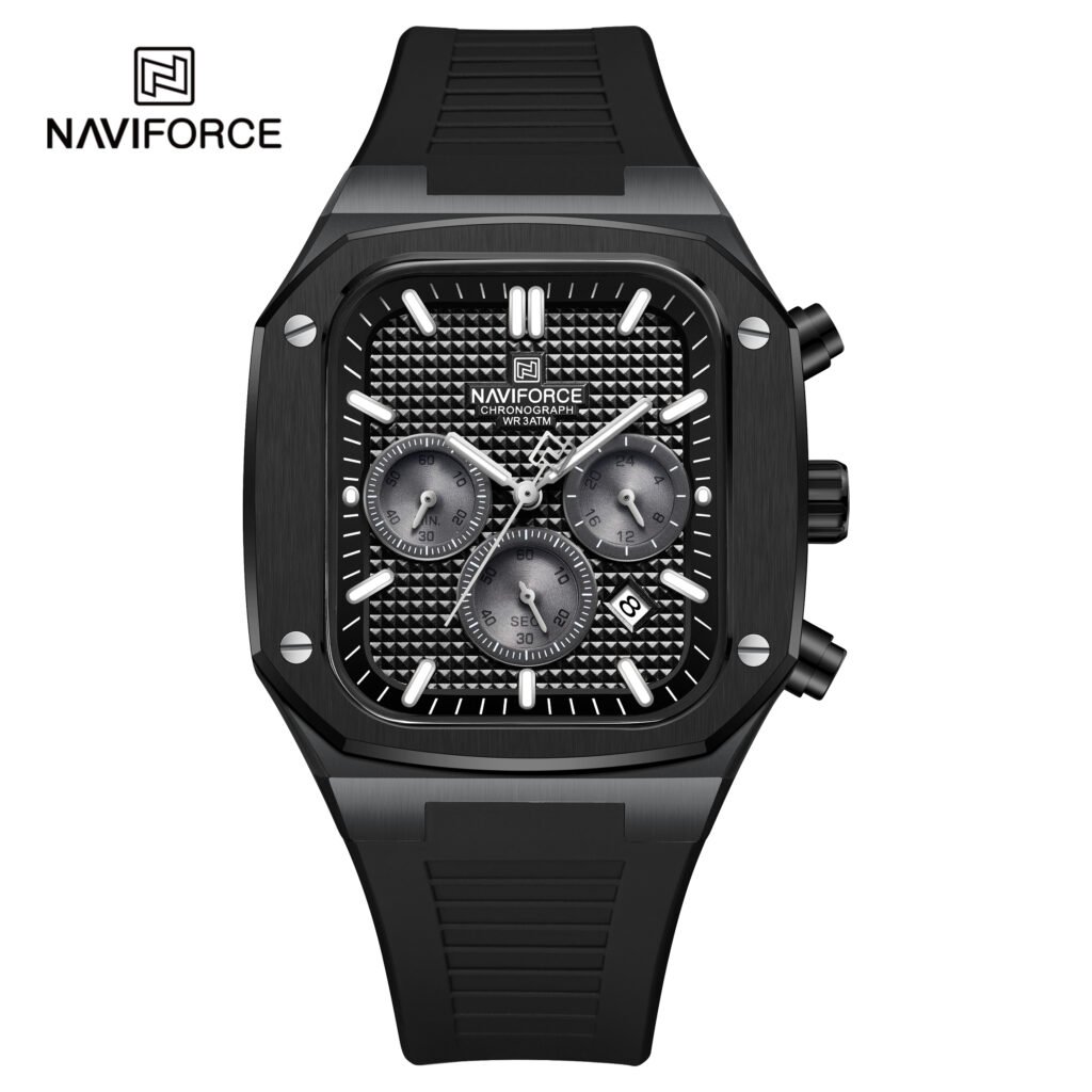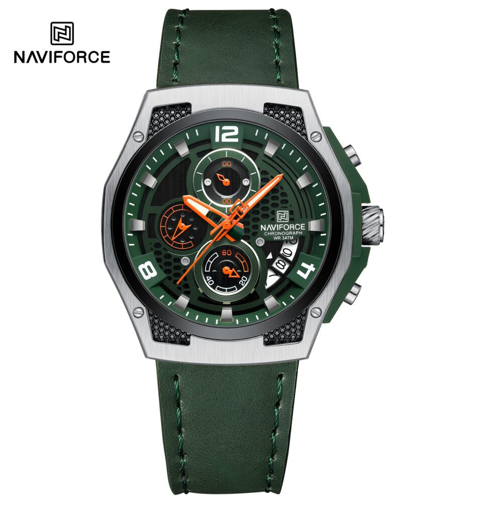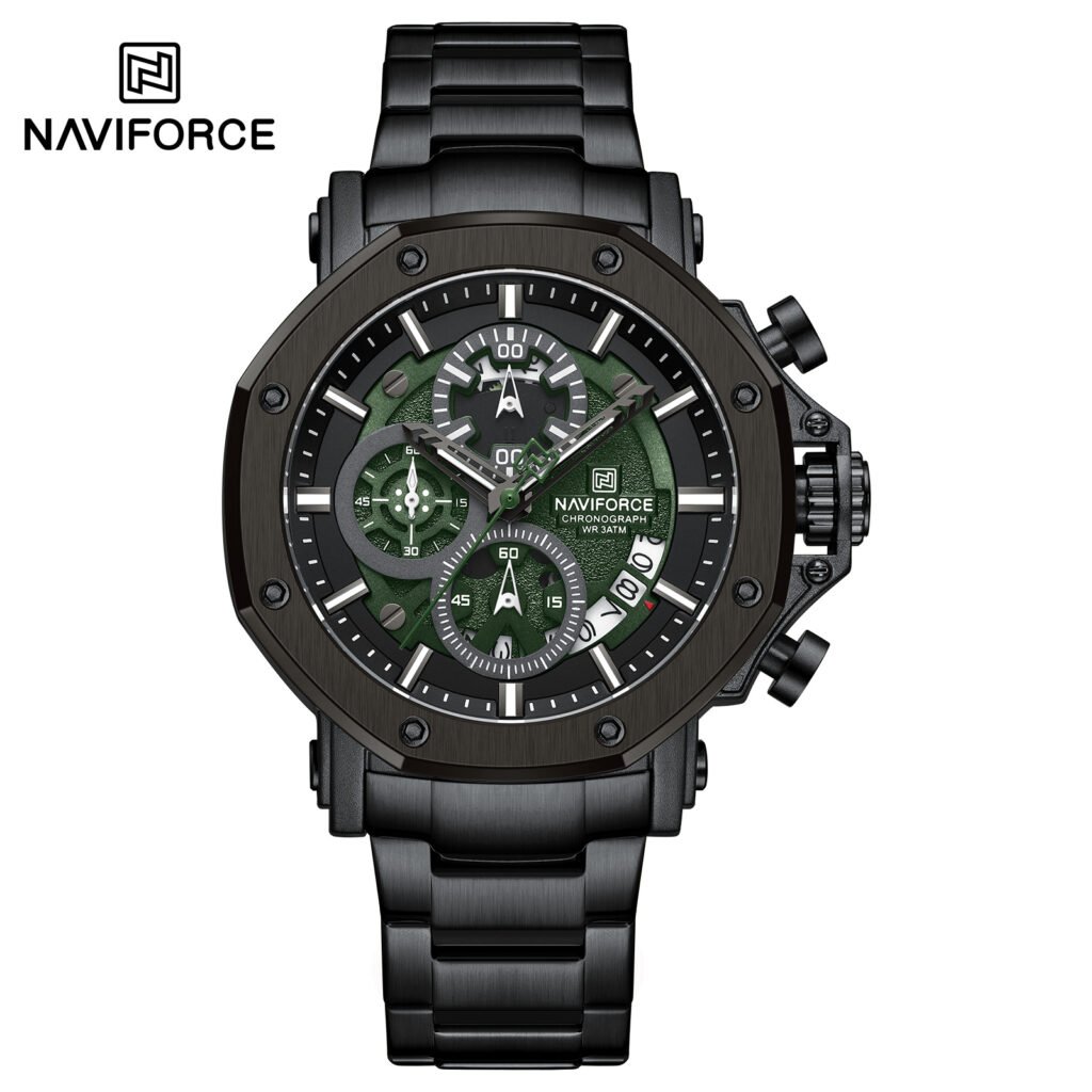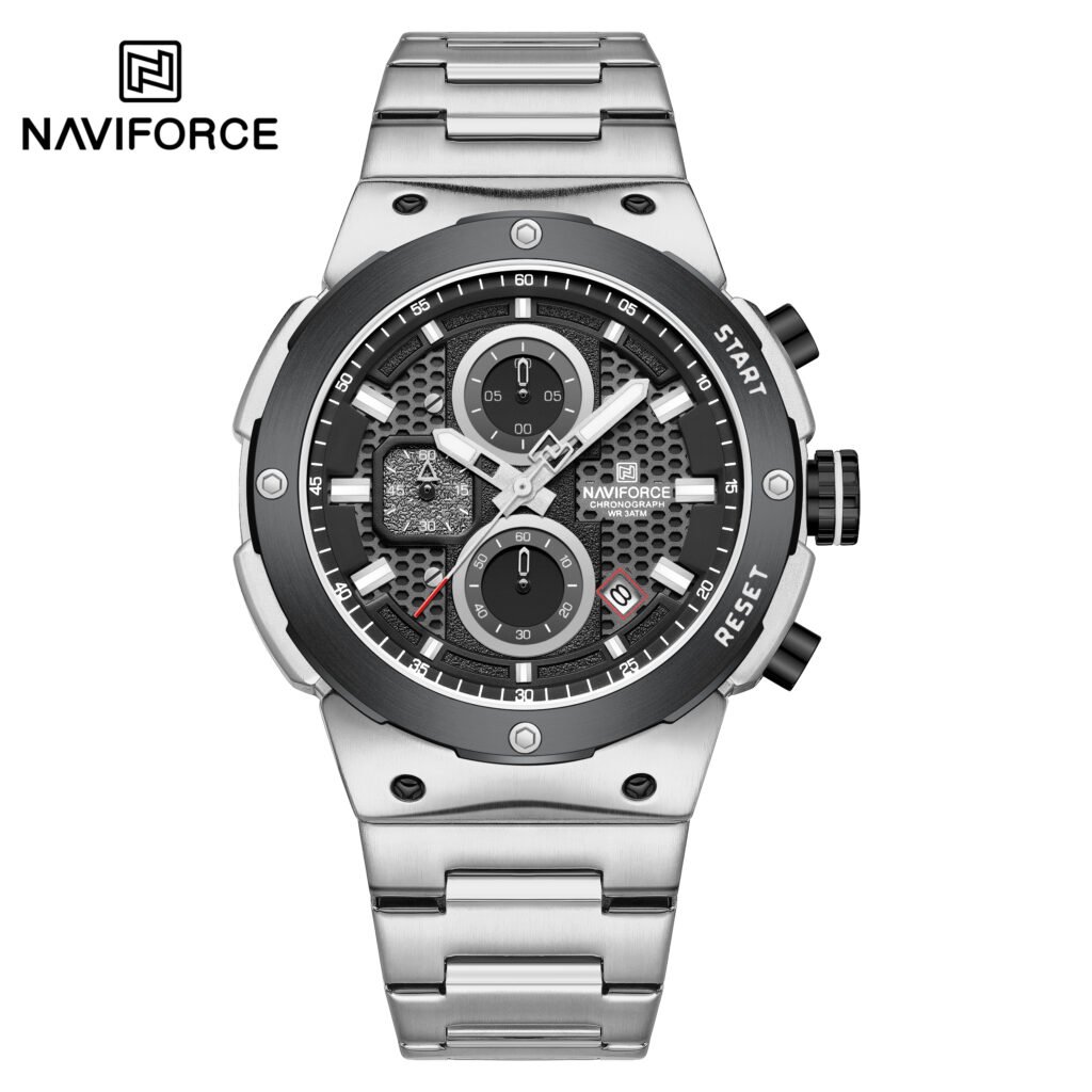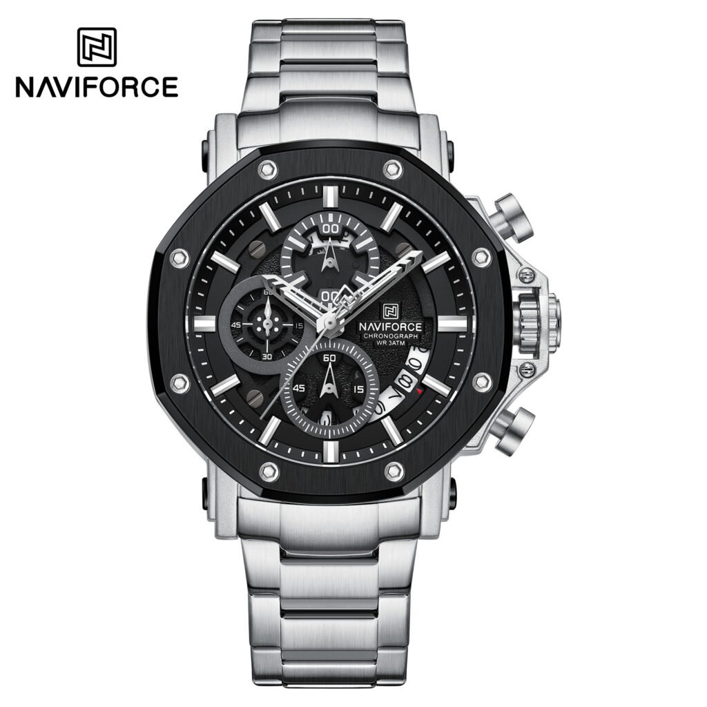 | Description: | The Naviforce NF8076 is presented as an elegant and sporty men’s chronograph watch that features a classic stainless steel bracelet, making it suitable for both business and casual wear. It is often referred to as the “Executive Chrono.” |